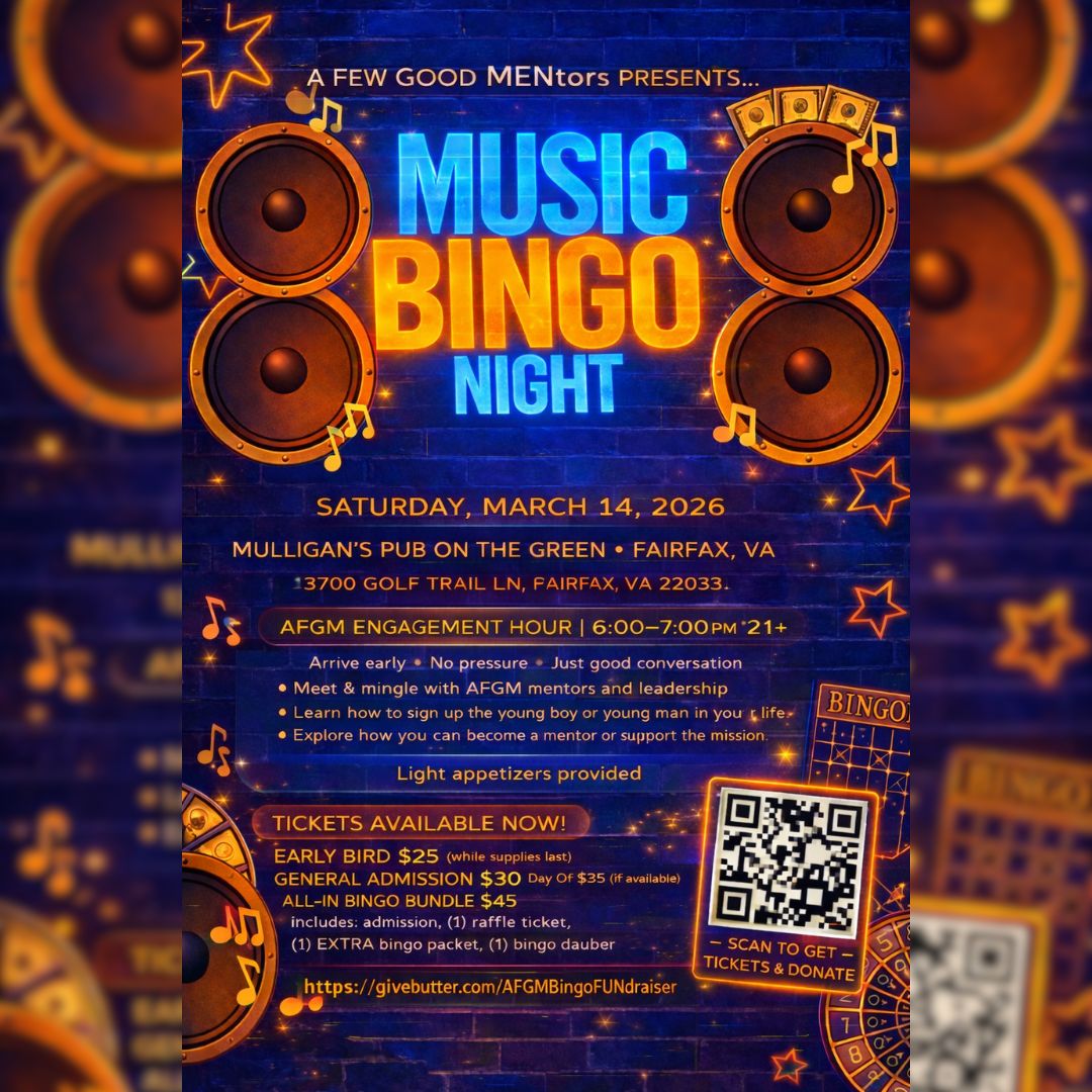 Join A Few Good MENtors for Music Bingo Night, where great music, nostalgia, and friendly competition meet, and the community comes together!